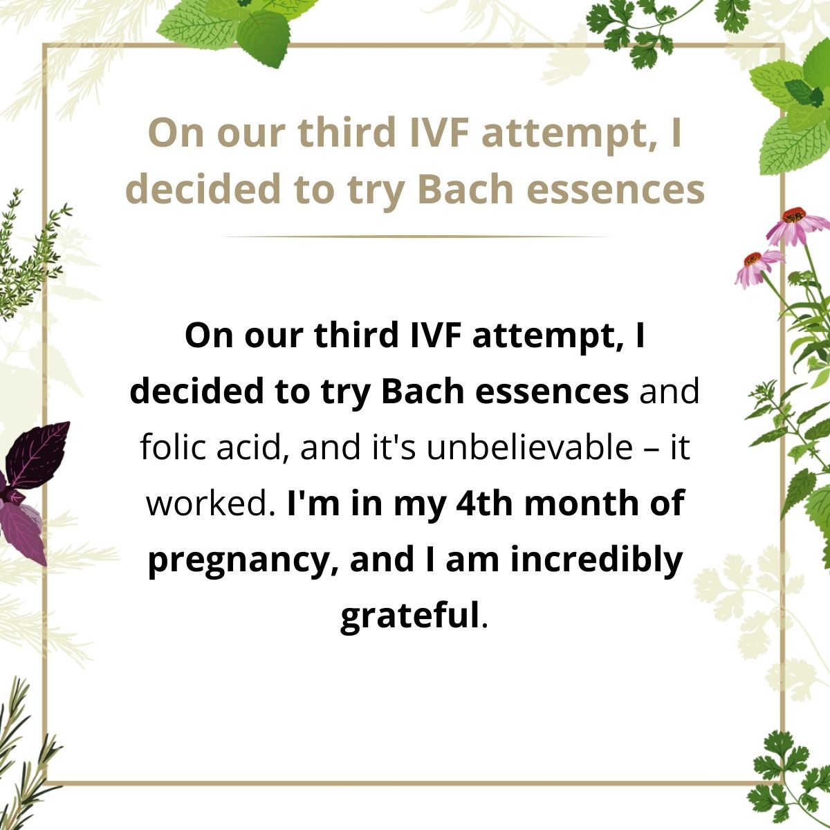These Bach Flower Essences have no side effects, cannot be overdosed, and can be safely combined with other forms of treatment, even in the case of assisted reproduction.