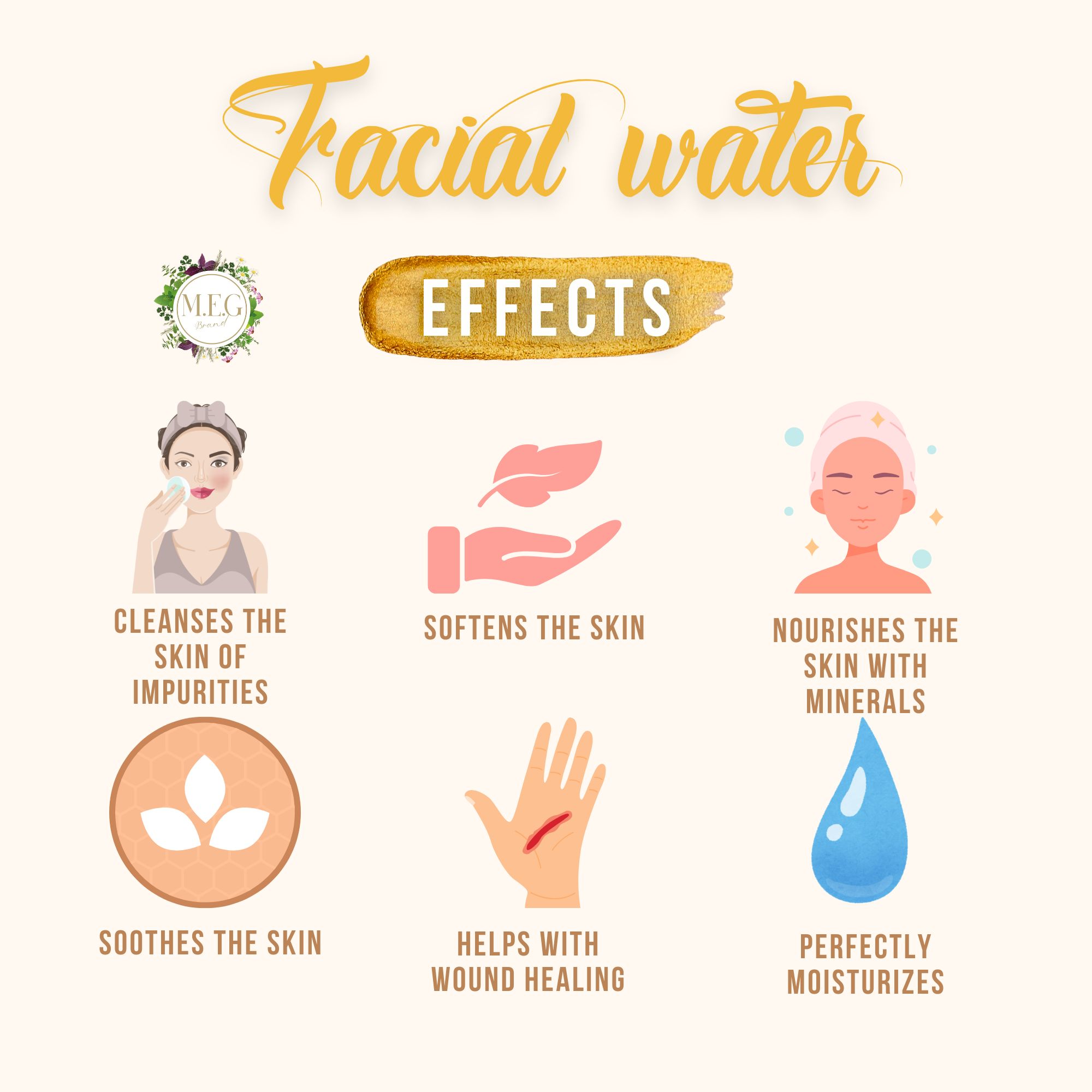 - Hydrates and enhances the absorption and effectiveness of serums and creams.